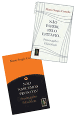 | Mario Sérgio Cortella – Em 1973, quanto entrei no curso de Filosofia, o grande poeta Mário Quintana publicou o livro Caderno H, coletânea de textos de sua coluna no jornal Zero Hora, de Porto Alegre. Eu, que era leitor da coluna do poeta, recebi da Vozes o convite para lançar um novo livro em comemoração aos 105 anos da editora. Decidi, por sugestão de minha mulher, Janete Leão, jornalista, seguir o exemplo do que fez Mário Quintana. Não por escrever tão bem quanto ele, mas por compartilhar o prenome. Foram dois livros de uma seleta de provocações filosóficas, nome usado por sugestão da Janete, com artigos publicados nos últimos dez anos em jornais. O primeiro foi Não Espere pelo Epitáfio... Sabe aquela música dos Titãs: "Devia ter amado mais, visto o sol nascer"? É mais ou menos essa idéia. São 32 provocações sobre amor, trabalho, vida, morte, publicadas em outubro de 2005. Agora, em março, lancei o Não Nascemos Prontos! No primeiro, o prefácio é de minha esposa, enquanto, no segundo, de André Cortella, publicitário e meu filho. Eles dizem como é ser casada ou ser filho de um filósofo, pessoa que, supostamente, vive num mundo de idéias. |