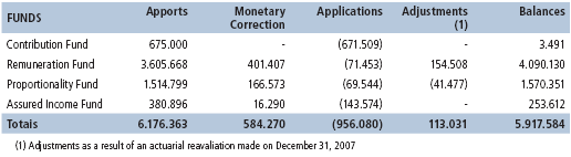 Item 4 of these Notes refers to the constitution of Pension Plan Funds of Benefit Plan 1, as a result of the Agreement to use the 2006 Surplus. The following table reflects the apports, monetary corrections, applications and adjustments that took place until December 31st, 2007.