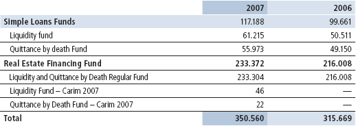 The Funds of the Investments Program are formed by percentages collected monthly in through the installment payments of Simple Loans and Real Estate Financing, as established in the regulations in force. The Quittance by Death Funds are directed to the quittance of future obligations in case of death of the participant.